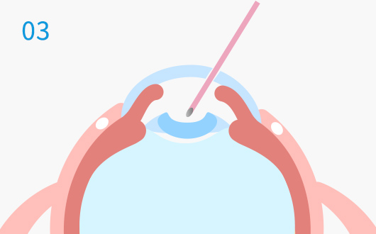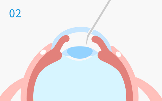 点眼での麻酔をして、耳側の白目と黒目の境目の角膜を約3mm切開します。