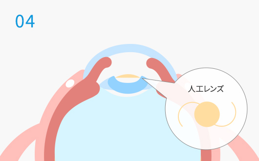 水晶体のあった場所に眼内レンズを挿入します。