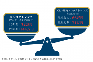 単純に費用だけ見ると高く感じられるかもしれませんが、毎日のコンタクトレンズにかかるコストだけも長期的には費用対効果は決して低くありません。
