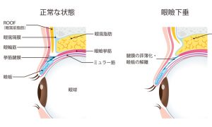 眼瞼下垂とは上まぶた(上眼瞼)が垂れ下がり、黒目(瞳孔)に被さることで、視界に支障をきたす病気です。